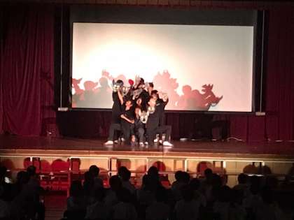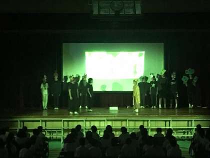 午前の部の最後は2年生の「ライオンキング」です。動物に扮した生徒たちは手作りの動物のお面をつけて、全力で演じました。シンバが立派に成長していく姿にはとても感動しました。