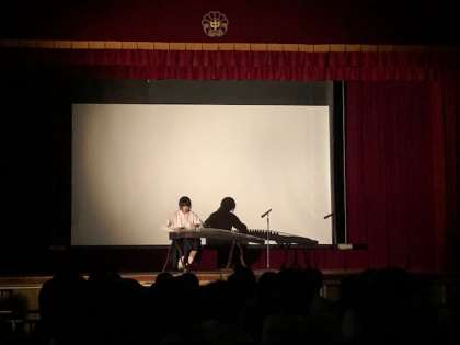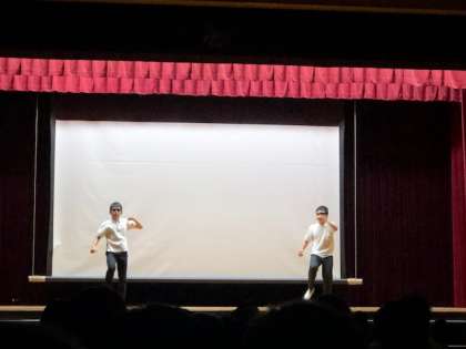 生徒会の舞台発表ではまず生徒会の仕事内容のビデオが放映されました。その後生徒会が司会で、有志の3組が特技の発表を行いました。1組はバク転など交えた体操、2組は息の合った2人組のダンス、3組は琴の演奏でした。3組のみなさん、ありがとうございました!!
