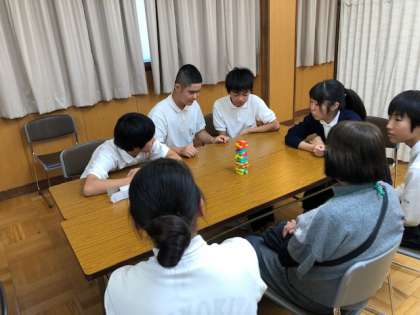 昨日に引き続き、2組、3組で高齢者とのふれあい体験授業が行われました。すごろくやジェンガで今日もとても盛り上がっていました。