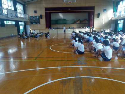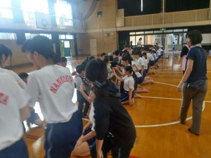 楽しかった時間は早く過ぎてしまうものです。最後は花道で園児さんを送り出します。短い時間でしたが、中学生も園児さんと大変仲良くなることができました。幼児との関わり方について、楽しく遊び、学ぶことができました。きのみ保育園のみなさん、ご協力ありがとうございました。