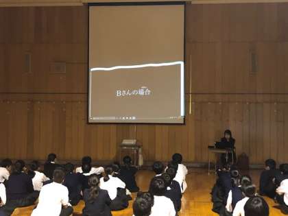 5時間目、携帯電話会社の方がスマホ・ケータイ教室を開いてくれました。普段使っているインターネットやスマホの危険性を改めて理解をしたと思います。
