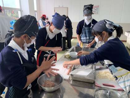 今週の月曜日、火曜日、金曜日と一年生で調理実習が行われています。メニューは焼売と中華スープです。