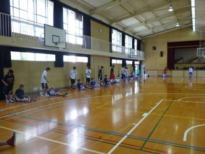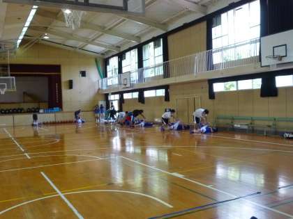 岐阜県から美濃加茂高等学校が南港北中学校で練習をするために来ました。中学生と一緒に練習をしていただきました。バスケット部にとっては、非常によい思い出と練習になりました。