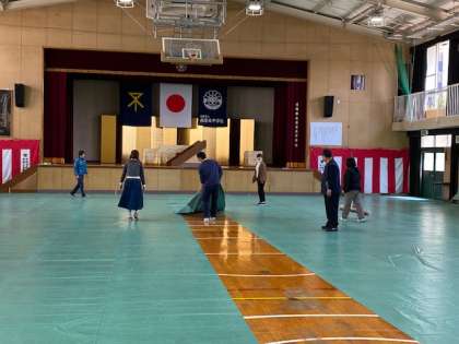 明日はいよいよ入学式です。例年ならば、在校生に設営をしてもらっていますが、今日は教職員で準備を行いました!規模を小さくしての実施になりますが、素晴らしい入学式にしましょう!!