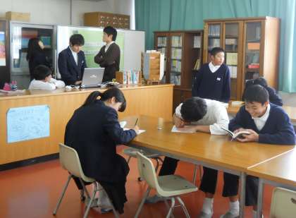 元気アップのボランティアさんと図書委員が協力して、毎日昼休みの図書館開館を行っています。「おすすめ本コーナー」もあり、すっかり定着した図書館活動です。これからもしっかり本を読んでほしいものです。