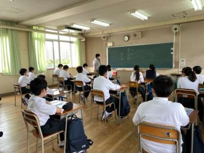 2か月遅れになってしまいましたが、ようやく授業が再開されました!イレギュラーなことが多くなっていますが、少しずつ中学校に慣れてくださいね!