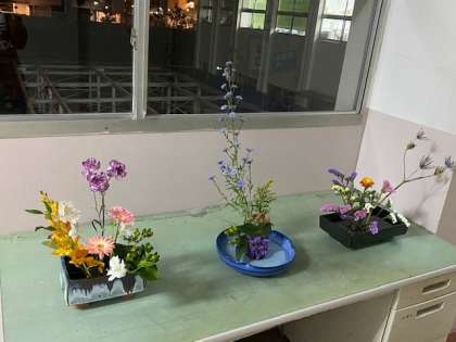 今回も、職員室前に華道部のみなさんが作品を飾ってくれています。本格的に寒くなってきたので、作品を見てほっこりしてみてはいかがですか?