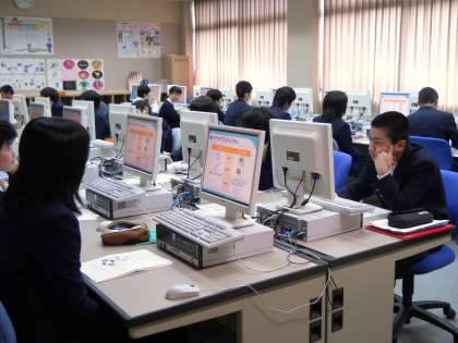 2年3組の3・4限は技術の授業でした。パソコン教室で、アナログとディジタルのそれぞれの特性の違いを学習しました。時計では、針で表すのと数字で表すののちがいですが・・・