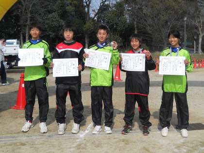 11日(水)南港中央公園で行われた第30回住之江区民マラソン中学生の部(3km)にサッカー部の1・2年生13名が参加しました。結果は、男子が惜しくも優勝は逃しましたが2位から10位までを独占!女子も3位!日頃のトレーニングの成果を見事に発揮しました。よくがんばりました。これからもたくさんの人が地域行事に参加してほしいものです。