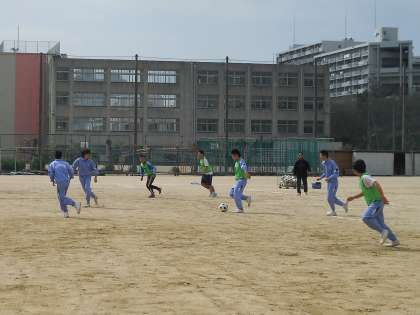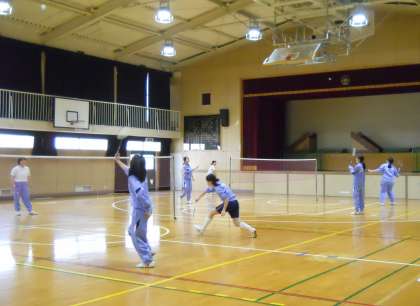 2限目3年3組の体育の授業の様子です。女子は体育館でバドミントン、男子は運動場でサッカー。公立前期の発表も終わり後期を残す人もいますが、卒業式を一週間後に控え、少しリラックスして楽しそうに取り組む姿が見られました。