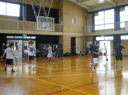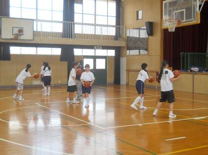 写真は、バスケットボール男女の様子です。ミニバス経験者もいました。期待できますね。