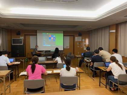 最初にteamsのさらに工夫した使い方、Googleの使い方、エクセルやワードの便利な機能について、最後に2学期から導入されるデジタルドリルについて学びました。