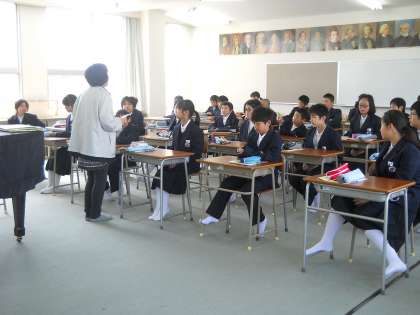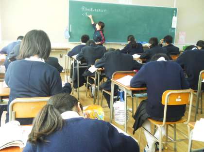 写真左は2年2組の家庭科。今日は教室で、いろんな食物にいての学習です。どこで食材を買いますか?の質問には、「カナート」「ナショナル」とスーパーの名が。