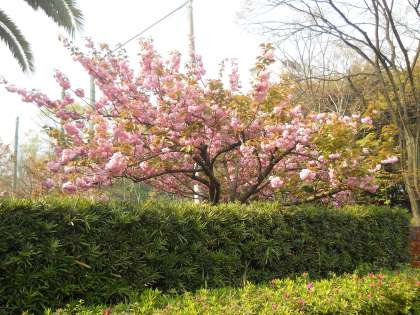 やっと雨が上がり、春らしい陽気になりました。正門横の遅咲きの桜が満開で、華やぎを与えてくれます。技術科で栽培しているイチゴも、冬の寒さに耐えかわいい花をつけました。