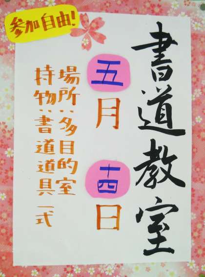 「書道教室」は参加自由で毎月行う予定です。続ければ字がうまくなりますよ。