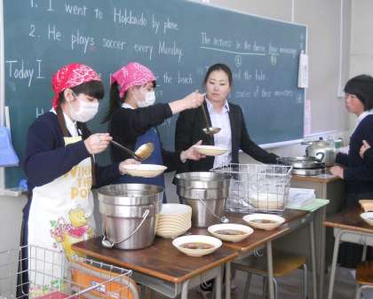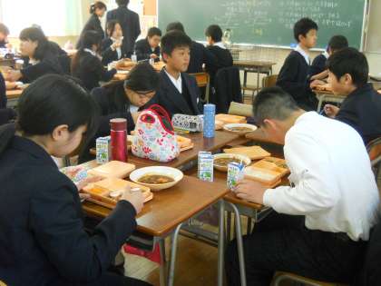 今日の給食の主菜は子どもたちに人気のビーフシチューです。教室では早速お代わりする生徒も。