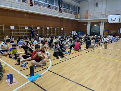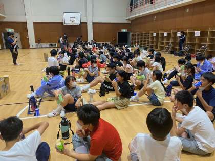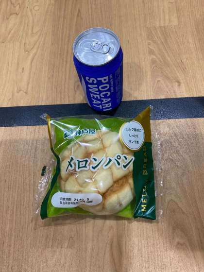 室内オリンピックのあとは、夜食(メロンパンとポカリスエット)タイムです。