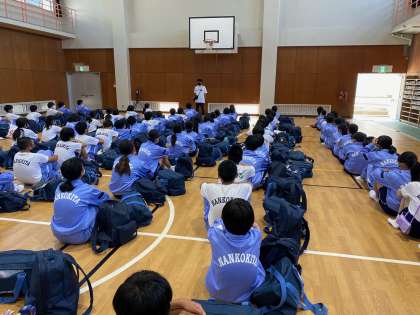 いよいよ日高少年自然の家とお別れ、ということで、体育室で退館式を行いました。