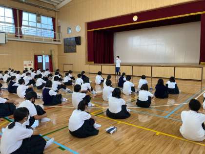 朝に1年生学年集会が行われました。先週一泊移住が行われ、クラス・学年の団結も増したと思います。今週金曜日に行われる体育大会でその姿を見せてほしいです。