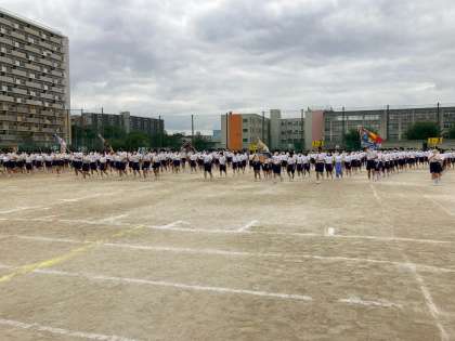 午後から、全校で金曜日に行われる体育大会の全体練習が行われました。入場や開閉会式の確認とラジオ体操を練習しました。暑い中でしたが、みんな頑張っていました。明日は、午前中が予行演習、午後から準備です。