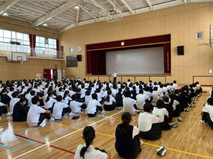 今日は、全校集会が行われました。これまで、グラウンドで行われていましたが、新しく完成した体育館での集会となりました。とてもきれいで、床はまぶしいくらいのきれいさです。これからいろいろな場面で使用することになりますが、大切に使っていきましょう!