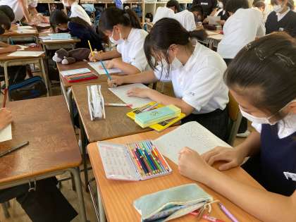 今月29日㈮に第43回文化発表会が行われます。それに向けて、今週から放課後30分間、取り組みの時間が設けられています。それぞれの学年で着々と準備が進んでいるようです。1年生は、モザイクアートに挑戦しています。大変な作業ですが、出来上がりを楽しみに頑張ってほしいです!