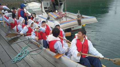無事にペーロン体験終了しました。1組が優勝。