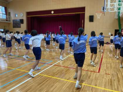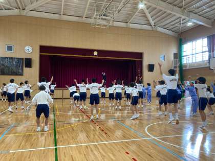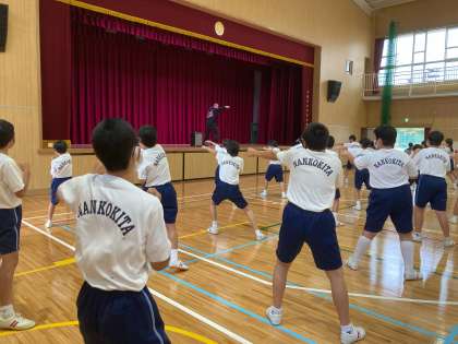 本日、ABCボクシングジム会長の松本憲亮さんにお越しいただき、1年生で『ボックスフィット』を行いました。『ボックスフィット』は、ボクシングとフィットネスを融合させたもので、音楽とリズムに合わせて身体を動かします。長い時間動き続けるのは、とても大変でしたが、子どもたちは初めての体験で楽しんでいました。