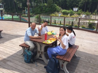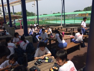 なかよくお弁当です。美しいみどりとさわやかな空気の中、みんなで食べるお弁当は最高です。