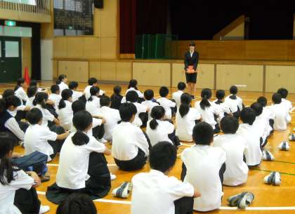 中学時代の思い出と、当時の先生との出会いが教職を目指すきっかけになったこと、夢を持つことの大切さなどを後輩に伝えてくれました。
