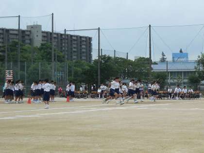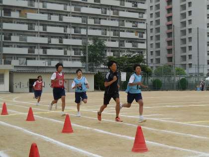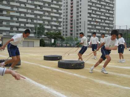 写真上、3人4脚レース。息をそろえてダッシュ。!