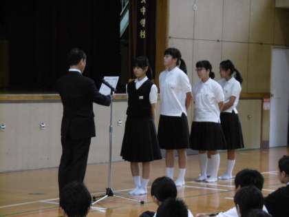 そのほかに、卓球部とバドミント部の表彰伝達がありました。