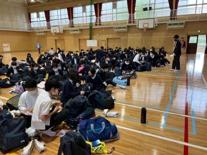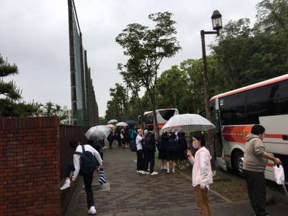 あいにくの雨ですが、8:30に元気に出発できました。お見送りいただいた、保護者の方、先生方ありがとうございます。気をつけて行ってきます。
