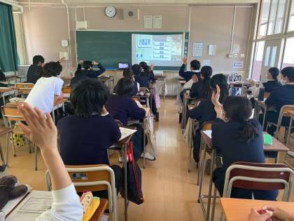 今日は外部講師さんに明石からオンラインで講話をしていただきました。2年生のみなさん、防災についての理解が深まったでしょうか?