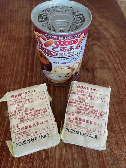 2年生は防災オンライン学習のあと、資料としてパンフレットと非常食のビスケットとパンを区役所からいただきました。