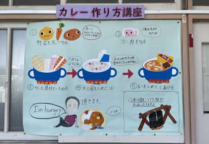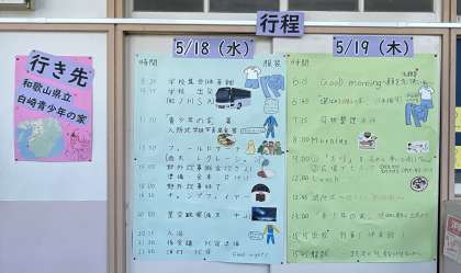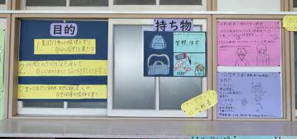 実行委員の生徒たちを中心に、2日間の行程や持ち物、野外炊事でのカレーの作り方などをわかりやすくまとめ、廊下に掲示してくれています。