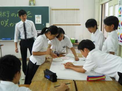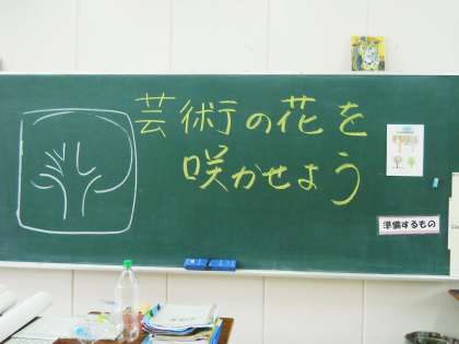 「芸術の花を咲かせよう!」ということで水彩の共同制作をしています。