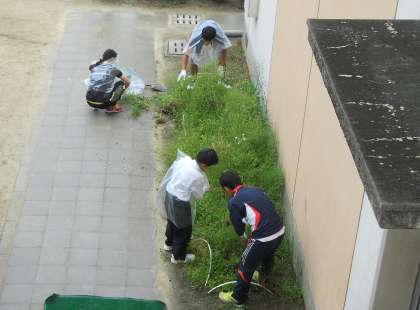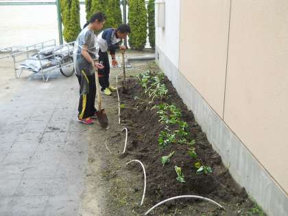 小雨の降る中、のぞみ学級ではサツマイモの苗を植え付けました。