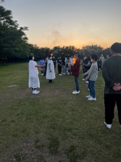 火の女神から火を受け取って、キャンプファイヤーに点火しました。