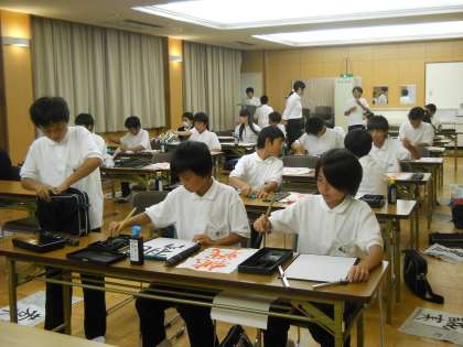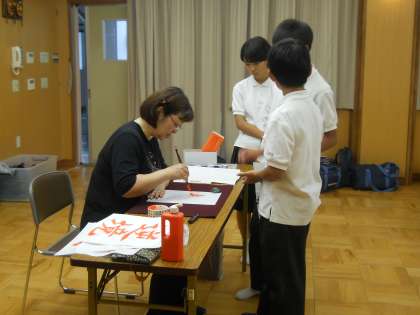 今年2回目の元気アップ書道教室です。多目的室の机が足りなくなるほどの大盛況。菊澤師範にお手本を書いていただき、真剣に練習します。