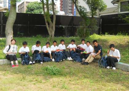 鑑賞の後は、曽根崎心中の舞台にもなった生玉公園で昼食です。