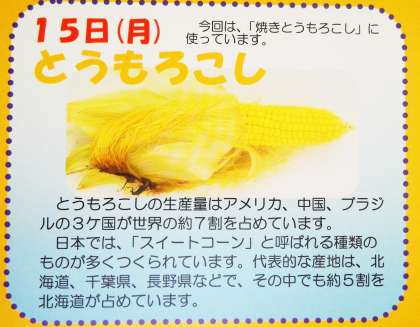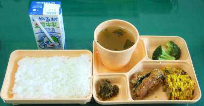 鯖の竜田揚げ、焼きとうもろこし、ブロッコリーの甘酢あえ、
