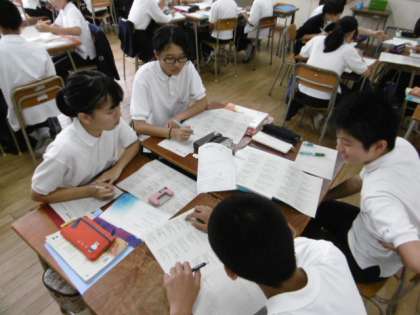 グループワークということで、みんな活発に意見を出し合い取り組んでいました。