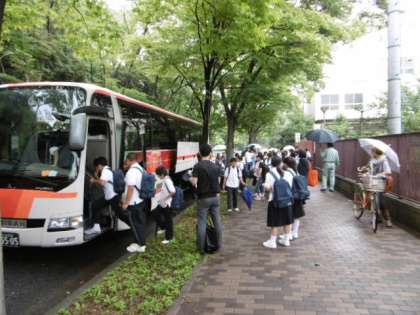 朝8時集合で、8時30分時間どおり、バスで学校を出発しました。