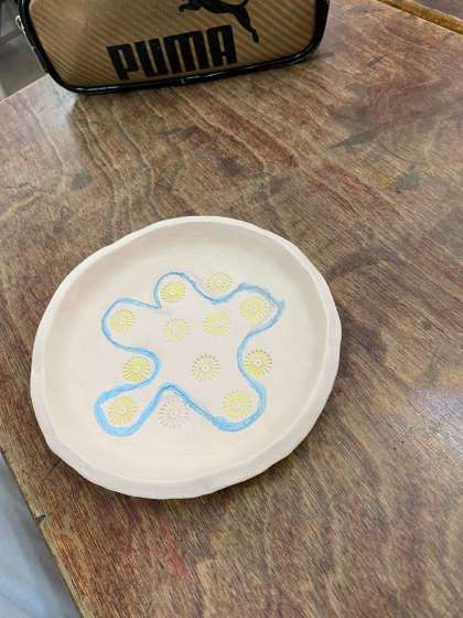 本日2年1組は陶芸教室の授業を受け、1学期に整形した器に絵付けと釉薬掛けをしました。この後、本焼きをし、出来上がった器は文化発表会で展示する予定です。完成が楽しみですね。