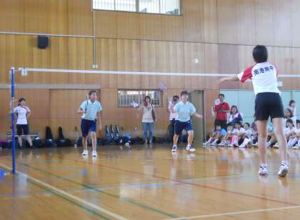 8日(土)、前日の個人戦に続きバドミントンの7B大会団体戦が住吉中学校で行われました。
