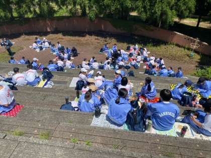オリエンテーリングの前に、つどいの広場でお昼ご飯です。