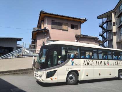 民泊を楽しんだ生徒さんたちをお迎えするバスがホテルを出発しました。