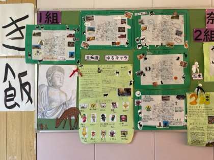 2年生は5/19(金)に行う校外学習に向けて、調べ学習を行いました。1組は奈良の豆知識とゆるキャラ、2組は奈良の歴史、3組は奈良のグルメと方言を調べました。