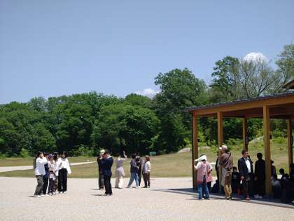 お世話になった農家さんたちとのお別れ式の後の記念撮影です。農業体験以外にも地域の小学校などにも訪問させていただきました。